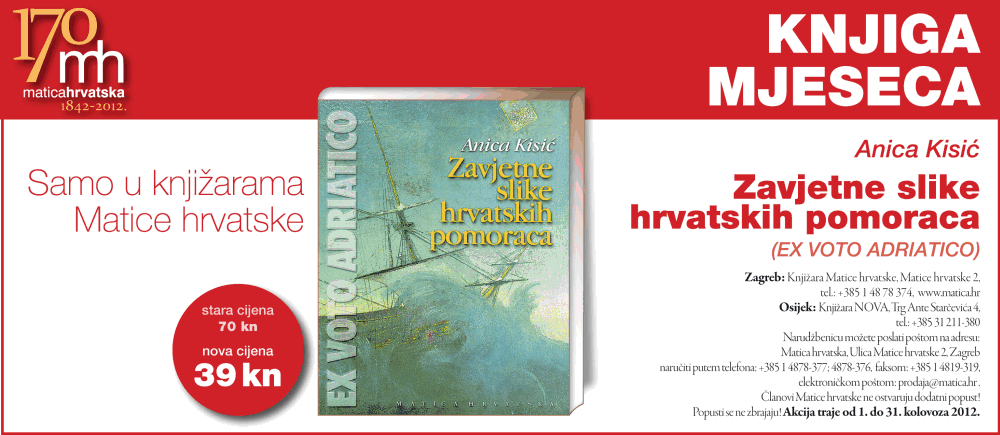 Knjiga mjeseca kolovoza u knjižarama Matice hrvatske – likovna monografija ZAVJETNE SLIKE HRVATSKIH POMORACA za samo 39 kuna!