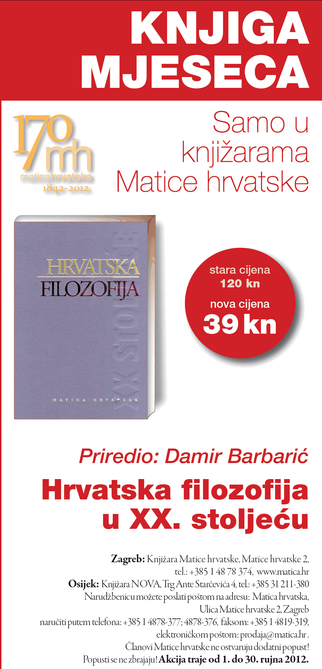 Knjiga mjeseca rujna u knjižarama Matice hrvatske – zbornik HRVATSKA FILOZOFIJA U XX. STOLJEĆU za samo 39 kuna!