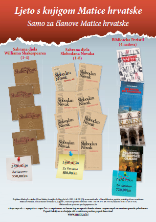 Narudžbenicu možete poslati i poštom na adresu: Matica hrvatska, Ulica Matice hrvatske 2, Zagreb ili naručiti putem telefona: +385 1 48 78 377, 48 78 376; faksom: +385 1 48 19 319; elektroničkom poštom: prodaja@matica.hr