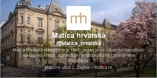 Kako bismo poboljšali informiranje o djelovanju Matice hrvatske i unaprijedili međusobnu komunikaciju, nakon otvaranja službene Facebook stranice Matice hrvatske odlučili smo se i za otvaranje službenog Twitter profila: