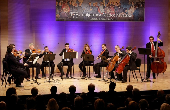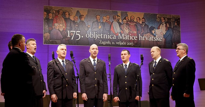 Središnja svečana proslava 175. obljetnice Matice hrvatske održana je u Dvorani Blagoje Bersa Muzičke akademije u Zagrebu 11. veljače. Svečanosti su prisustvovali brojni Matičini dužnosnici i članovi te ugledni gosti iz društvenoga, političkog i kulturnog života. Među njima su bili predsjednik Vlade Republike Hrvatske Andrej Plenković, ministrica kulture Nina Obuljen Koržinek, ministar znanosti i obrazovanja Pavo Barišić, ministar vanjskih poslova Davor Ivo Stier, izaslanik predsjednice Mate Granić, predsjednik Hrvatske akademije znanosti i umjetnosti akademik Zvonko Kusić, predsjednik Društva hrvatskih književnika Božidar Petrač, zagrebački nadbiskup kardinal Josip Bozanić, rektor zagrebačkog sveučilišta Damir Boras, rektor Hrvatskoga katoličkog sveučilišta Željko Tanjić, predsjednik HBK zadarski nadbiskup Želimir Puljić, predsjednik Mešihata Islamske zajednice u Hrvatskoj muftija Aziz ef. Hasanović i brojni drugi.