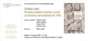 Matica hrvatska poziva vas na predstavljanje knjige Zorislava Lukića Hrvatska seljačka stranka u borbi za hrvatsku samostalnost do 1941. u izdanju...