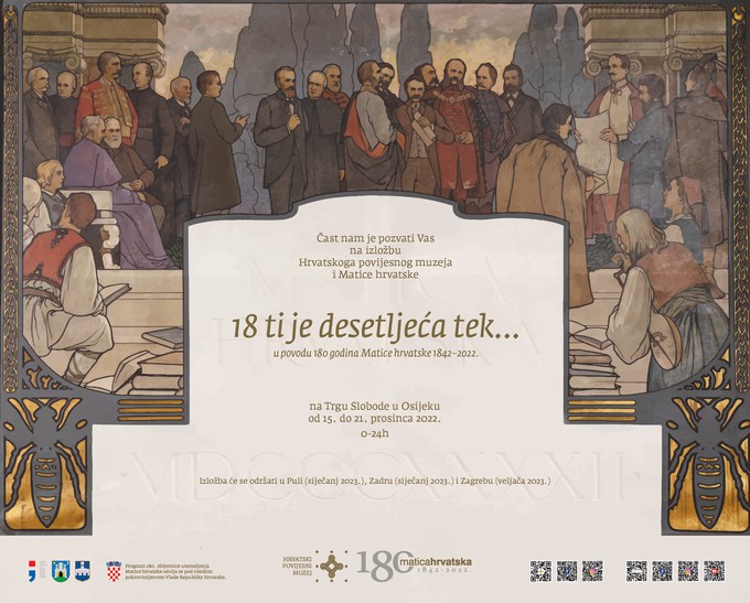 Hrvatski povijesni muzej priredio je u suradnji s Maticom hrvatskom izložbu „18 ti je desetljeća tek… 180 godina Matice hrvatske 1842–2022.“. Riječ je o gostujućoj izložbi za vanjske prostore koja se sastoji od 20 dizajniranih panoa na prosvjetljenim postamentima. Izložba prvo gostuje na Trgu Slobode u Osijeku (15-21. prosinca 2022.), a u siječnju i veljači 2023. moći ćete je vidjeti u Zadru, Puli i Zagrebu.